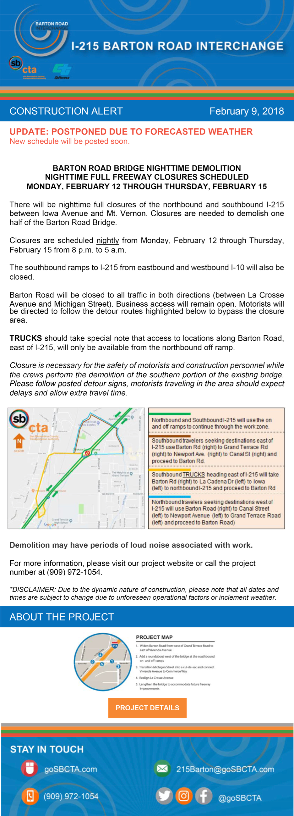 POSTPONED: Barton Road Bridge Nighttime Demolition