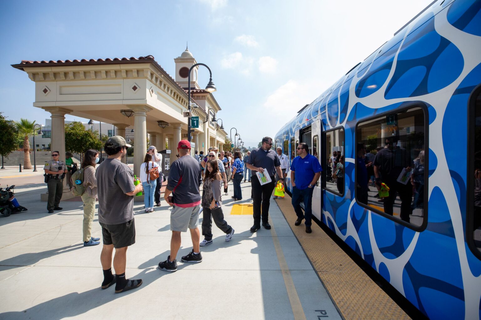 North America’s first federally compliant self-powered, zero-emission passenger train arrived in San Bernardino County on June 20. The train’s arrival at the San Bernardino Depot Train Station marks a significant milestone on its incredible journey from concept to reality. The passenger train, a Zero-Emission Multiple Unit (ZEMU), uses a hybrid hydrogen and battery technology to propel the train and power onboard electrical systems. Water vapor is the only emission generated from the propulsion system, making this a clean transit alternative.